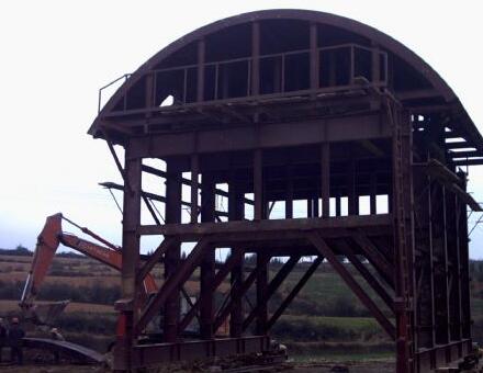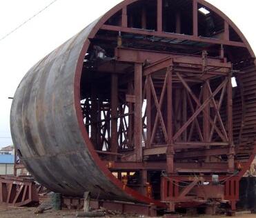 西安襯砌臺(tái)車主要用于中長(zhǎng)隧道施工中,對(duì)施工進(jìn)度、砼表面質(zhì)量要求較高。此類襯砌臺(tái)車設(shè)計(jì)為整體鋼模板、液壓油缸脫立模,施工中靠絲桿千斤支撐,電動(dòng)減速機(jī)自動(dòng)行走或油缸步進(jìn)式自動(dòng)行走,全部采用砼輸送泵車灌注。大部分襯砌臺(tái)車為該類臺(tái)車。設(shè)計(jì)該類襯砌臺(tái)車時(shí),在滿足通過(guò)凈空要求的情況下,應(yīng)考慮門架內(nèi)側(cè)斜支撐下部安裝位置,盡可能靠近立柱下部,使之受力最好。門架橫梁應(yīng)足夠高,常規(guī)鐵路隧道不小于400mm,公路隧道不小于5500mm。模板端面與門架間的調(diào)整最小距離不小于250mm,否則將造成前后襯砌段搭接困難。